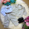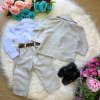 TECIDO TERNO 100% POLIESTERTECIDO CAMISA BRANCA SOCIAL MANGA LONGA MICROFIBRA 100%     Conjunto composto por: Camisa Social na cor Branca Manga Longa, gravata borboleta cinza, cinto, Calça na cor cinza e blaizer na cor cinza Demais peças ou acessórios, não inclusos.    CASAMENTO,NOIVINHO,PAJEM,BATIZADO    Calçados Vendindos Separadamente    * LEMBRANDO QUE PODERA HAVER VARIAÇÃO DE TONALIDADE DO PRODUTO DEPENDENDO DA TELA DO SEU DISPOSITIVO