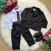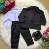 Conjunto composto por: Camisa Social na cor Branca Manga Longa, Gravata na cor PRETA com detalhes, Cinto na cor PRETA, Calça Listrada na cor PRETA e Blaizer na cor PRETA listrada Demais peças ou acessórios, não inclusos.    CASAMENTO,NOIVINHO,PAJEM,BATIZADO    Calçados Vendindos Separadamente    * LEMBRANDO QUE PODERA HAVER VARIAÇÃO DE TONALIDADE DO PRODUTO DEPENDENDO DA TELA DO SEU DISPOSITIVO