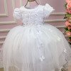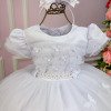 Vestido Menina Bonita Branco Borboletas Peito Tule