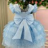TECIDO 100% POLIÉSTER ESSE MODELO ACOMPANHA LAÇO BICO DE PATO 3 MARIAS,BABADO,BABADINHO Confeccionado em tecido misto possui forro em poliéster e algodão para não incomodar a criança e proporcionando um caimento incrível e sofisticado, possui gola redonda, comprimento médio, mangas curtas, contém, também, elástico nas costas para melhor ajuste, acabamento com lindo laço na parte posterior do vestido completa o look dos sonhos! * Medidas podem variar em até 4cm. * Caso queira o vestido mais armado, recomendamos o uso do saiote ou anágua de armação, disponível no nosso site na categoria acessórios. * Tiara vendida separadamente, disponível em nosso site na categoria acessórios. * Calçados vendido separadamente, disponível em nosso site na categoria calçados. * LEMBRANDO QUE PODERA HAVER VARIAÇÃO DE TONALIDADE DO PRODUTO DEPENDENDO DA TELA DO SEU DISPOSITIVO